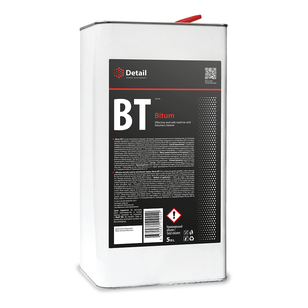 Эффективный и безопасный очиститель гудрона и битума. Состав значительно упрощает процедуру подготовительной очистки поверхностей, за считанные секунды справляясь с наиболее едкими загрязнениями. Уникальность состава Bitum (BT) в его безопасности для всех наружных поверхностей: лака, стекол, пластика. Bitum (BT) не содержит абразивов, не царапает поверхности и не повреждает слой ранее нанесенных защитных покрытий. Состав: ≥30% алифатические углеводороды; ≥5%, но <15% органические растворители. Способ применения: 1. Помойте автомобиль при помощи высококачественного неагрессивного автошампуня. Рекомендуется использовать специализированный состав Active Safe (AS). 2. Распылите состав Bitum (BT) на обрабатываемые поверхности и подождите 2-4 минуты. При тяжелых загрязнениях необходимо использовать микрофибру. 3. Смойте остатки состава струей воды либо тщательно протрите чистой микрофиброй.