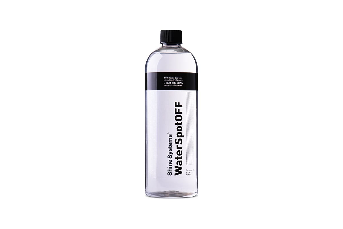 Профессиональный состав для борьбы с водным камнем - WaterSpotOFF от Shine Systems.Очиститель на основе кислот легко и быстро удалит с поверхностей автомобиля отложения солей, подтеки, следы высохших капель. Средство безопасно для использования на лакокрасочном покрытии, а также изделиях из пластика, стекла, хрома. Преимущества очистителя водного камня Shine Systems WaterSpotOFF: - Эффективно удаляет водный камень и минеральные отложения; - Безопасен для большинства поверхностей; - Прост в использовании — не требует дополнительных усилий для удаления загрязнений; - Обладает приятным ароматом, не оставляющим резкого запаха после применения.