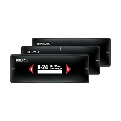 Кордовые пластыри ROSSVIK (серия R) предназначены для ремонта всех типов радиальных бескамерных и камерных автошин легковых автомобилей, грузового и пассажирского транспорта, сельскохозяйственной и карьерной техники. Обеспечивают надежный и долговечный ремонт в любом ремонтопригодном месте автошины. Пластыри ROSSVIK вулканизируются "горячим"- (ТЕРМО) и "холодным" способами.