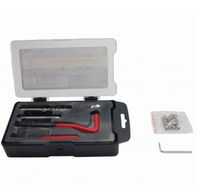 Набор ST214 для ремонта поврежденной резьбы M8×1.25 в двигателях и других компонентах автомобилей. Сверла и метчики изготовлены из быстрорежущей стали HSS. Одноступенчатые метчики нарезают резьбу, в которую вставляется спиральная вставка из твердой нержавеющей стали.