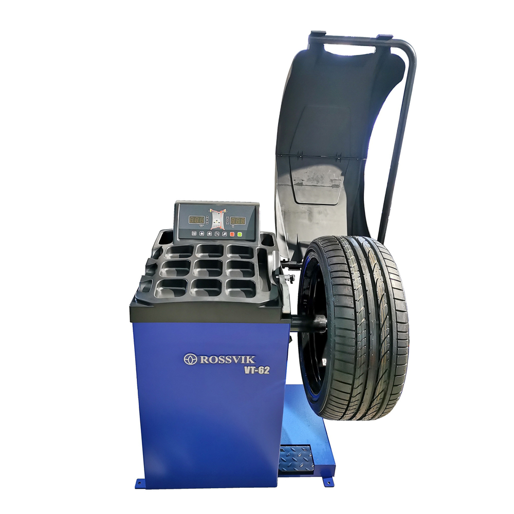Балансировочный станок ROSSVIK VT-62 с электронной линейкой для балансировки колес легковых автомобилей и малотоннажных грузовых автомобилей.
